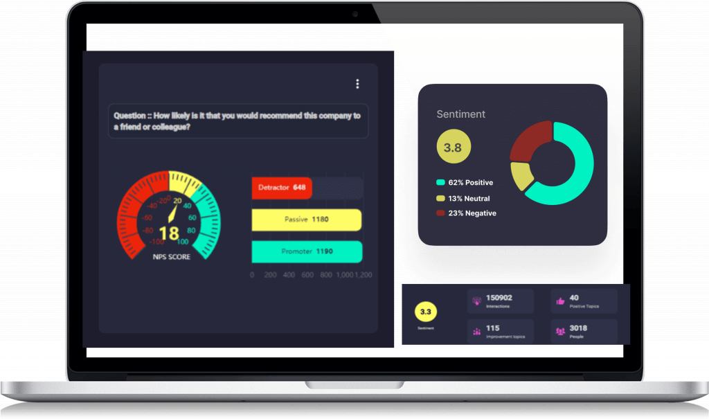 Intuitive eNPS tool that leverages both structured and unstructured data to deliver real-time assessments of employee satisfaction and loyalty, offering HR a comprehensive view of overall employee sentiment.